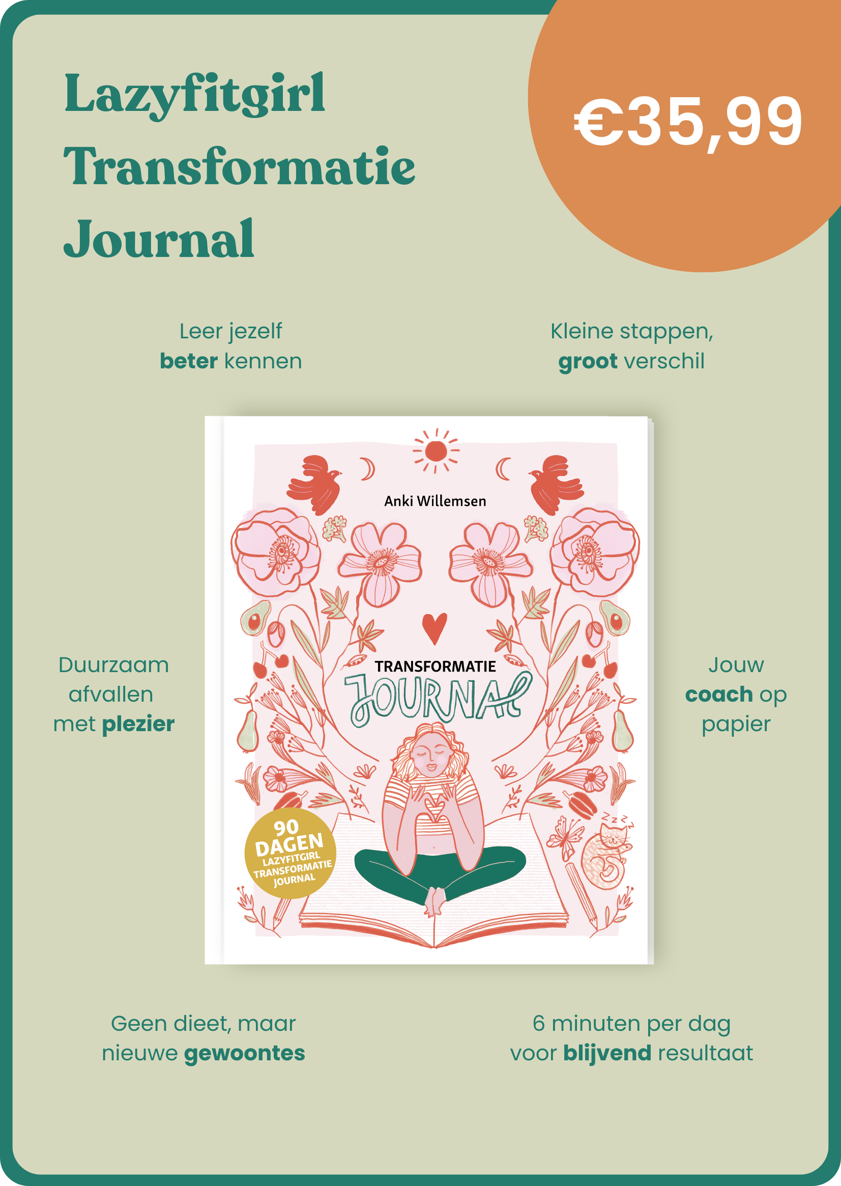 Stel je voor: je wordt wakker, pakt je journal erbij en in slechts 6 minuten per dag zet je jezelf op scherp. Geen schuldgevoel meer na een eetbui. Geen frustratie omdat je weer ‘opnieuw moet beginnen’. Maar rust. Inzicht. Échte verandering.